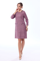 Платье прямого силуэта из  вискозно-льняной ткани, полочка с планкой , застегивающейся на петли и декоративные пуговицы, с нагрудными выточками и накладными фигурными  карманами в области бёдер, горловина круглая, обработана притачной  обтачкой, рукав втачной, одношовный, длиной ниже локтя. В боковых швах разрезы длиной 20 см.