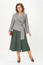 Платье отрезное по линии талии. Перед лифа со средним швом и разрезом с застёжкой по горловине на навесную петлю и декоративную пуговицу. Юбка со сборкой по линии талии и карманами в боковых швах. По низу юбки пришита фирменная эмблема «SWАLLOW». Рукав цельнокроеный, отрезной по линии проймы, со сборкой по окату. Низ рукава собран на эластичную тесьму.