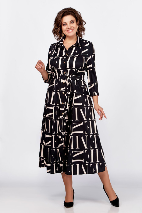 Платье Swallow 784 черный+принт бежевые буквы