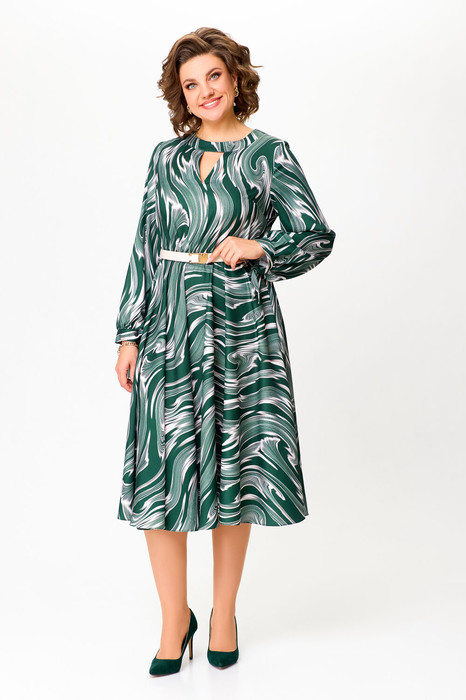 Платье из мягкой вискозной ткани, Х-образного силуэта, отрезное по линии талии.