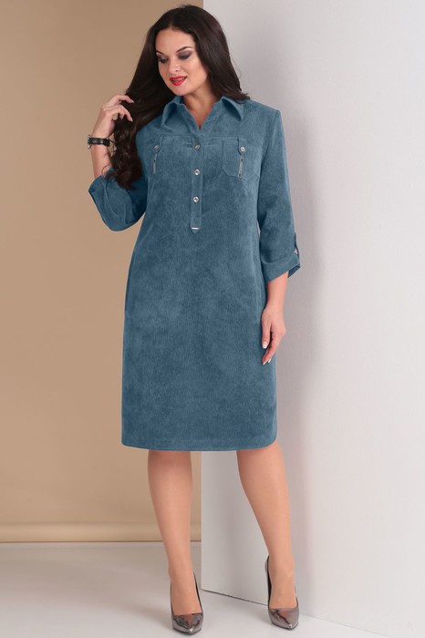 Современное вельветовое платье в стиле сафари  — отличный выбор для Вашего гардероба в любое время года. Платье слегка расширено к низу. На переде обработаны два кармана c листочками, два накладных кармана в области груди с отделочной тесьмой, застёжка на 3 петли и пуговицы. Спинка слегка удлинена по отношению к переду, боковой шов с отделочной вставкой, декорированной тесьмой с полукольцом, и полукруглыми разрезами внизу. Рукав втачной, одношовный, внизу присобран патой. Воротник стояче-отложной со стойкой. Фурнитура может отличаться от представленной на фото.