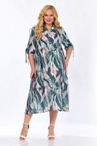 Элегантное платье свободного кроя, выполненное из хлопковой ткани с дизайнерским принтом, станет неотъемлемой частью Вашего гардероба в повседневной жизни и в нарядных образах. На переде обработаны рельефные швы из пройм, переходящие в складки на уровне талии, функциональная застёжка-планка на 3 петли и пуговицы, а также вертикальная настрочная планка по центру, снизу декорированная пуговицами. Спинка с подрезом и выходящей из-под него встречной складкой. В боковых швах обработаны разрезы. Низ изделия разноуровневый(низ переда с плавным прогибом). Рукав втачной, длиной чуть ниже локтя, с декоративным вырезом и завязывающейся патой. Воротник стояче-отложной со стойкой.