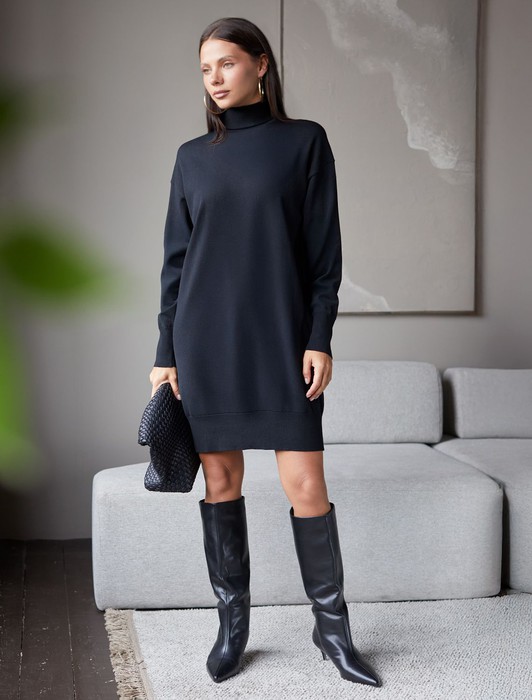 Состав: 82%Хлопок 18%ПА Параметры модели на первом фото: Рост 170, бюст 83, талия 64, бедра 88 Размер товара на первом фото: 42Платье тонкой вязки выполнено из хлопка. Лаконичная модель с высоким воротом как у водолазки дополнена манжетами с золотистыми пуговицами. Изделие свободно сидит по фигуре и не сковывает движений. Мягкая пряжа очень приятная к телу не колется и сохраняет тепло при этом не перегревая.