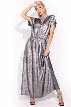 Стильное платье А-силуэта, выполненное из вискозы с оригинальным принтом. Платье отрезное по линии талии. Верхняя часть переда платья с круглой горловиной, спинка - со средним швом и капелькой, застегивающейся на навесную петлю и пуговицу. Рукав цельнокроенный, длиной 7/8. Нижняя часть платья покроя полусолнце. На одной из сторон юбки переда обработана отделочная планка с декоративными пуговицами, внизу - разрез. В боковых швах в области бедер обработаны карманы. В центральной части переда в области талии - притачной пояс со съемной декоративной цепью, которая изящно подчеркивает линию талии. По боковым швам и спинке пояса вставлена широкая резинка.