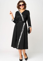 Платье полуприлегающего силуэта с вертикальными рельефами. Длина миди. Кокетка спереди и по спинке. Застёжка спереди на петли и пуговицы. Воротник рубашечный. Рукав прямой, понизу широкая манжета (8 см). Манжета с застёжкой на петли и пуговицы. В боковых швах карманы. Платье на подкладке. В комплекте съёмный ремень.