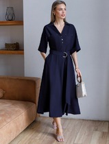 27.03 Vilatte Платье-рубашка А-силуэта с поясом и карманами из плотного лиоцелл