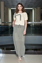 Для придания силуэтности платью, по линии талии настрочена кулиса с резинкой, переходящая в завязки пояса.