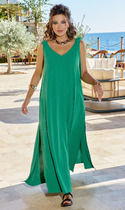 Летнее платье длины миди, выполненное в ярком зеленом оттенке — это настоящая находка для тех, кто желает привнести в свой гардероб яркие краски и удобные формы. Силуэт сарафана словно обнимает женскую фигуру, не стесняя свободу движений и при этом даря ощущение легкости. Он идеален для дневных прогулок, когда стоит теплая погода, или уютных встреч на террасе кафе, наслаждаясь жарким летом.
