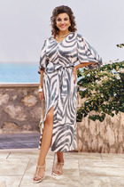 Шикарное платье с зебровым принтом и «театральными» рукавами в духе коллекций от-кутюр позволит своей обладательнице выделиться из толпы, привлечь восхищенные взгляды и быть в центре внимания на любом мероприятии! Платье выполнено из инновационной вискозной ткани с благородным матовым блеском, которая хорошо держит форму и слабо мнется. Принт в виде акварельной интерпретации анималистических мотивов – тренд сезона! Это изысканное платье преобразит любую женщину- подчеркнет все, что нужно подчеркнуть, и скроет все, что нужно скрыть! Платье длинное, прямого силуэта, с V-образной горловиной. Втачные рукава длиной до локтя. Пышная форма рукавов достигается глубокими складками сложной формы, которые по низу фиксируются подкладкой. По переду платья - средний шов, переходящий в разрез. При желании, платье можно по талии зафиксировать поясом. Длина платья от высшей точки плечевого шва до низа 131 см. Длина рукава 37 см по короткой стороне. Длина рукава 45 см по длинной.