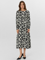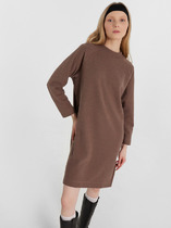 Это платье сотканное из тончайшего трикотажа с деликатной фактурной основой и тончайшей люрексовой ниткой. Полотно платья свободно ниспадает от плеч, даря свободу движения. Платье прямого силуэта с акцентной деталью в виде качели по переду платья, с заложенными складками по плечу. Линия плеча имеет ровную форму. Рукав втачной, длинный.