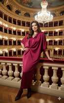 Состав: Трикотажное полотно с люрексной ниткой (75% вискоза, 15% акрил, 5% эластан, 5% люрекс), отделка изделия вискоза (100% вискоза).