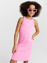 Платье из натуральной хлопковой ткани кулирки. Силуэт расширенный от линии груди, спереди и сзади подрез, юбка на сборку, рукав втачной длина 3/4, с 2-мя строчками по низу и плечу на спандекс, на спинке капелька с пуговицей.