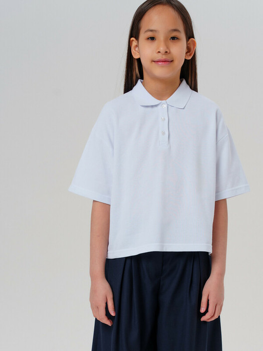 Классическое белое оверсайз поло с коротким рукавом для девочки