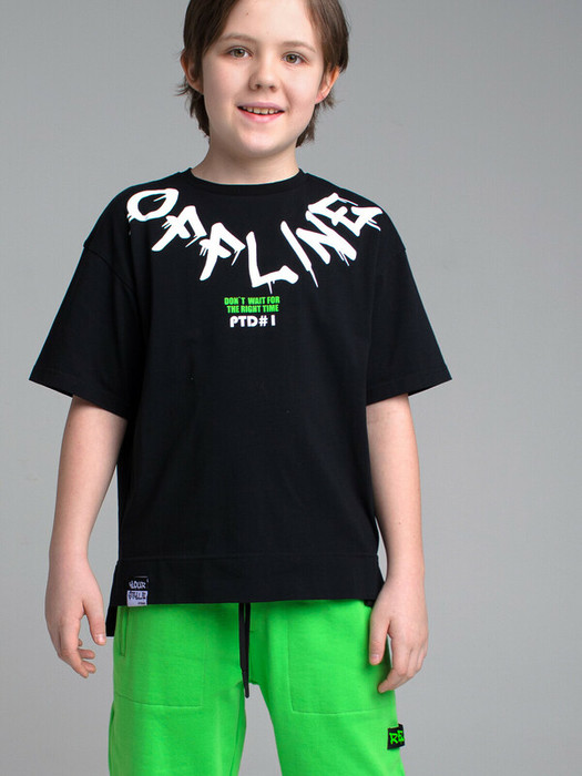 Футболка свободного силуэта из качественного и приятного на ощупь трикотажа джерси;   высокое содержание хлопка 95%; благодаря наличию эластана в составе ткани; изделие проще в уходе и держит форму;
