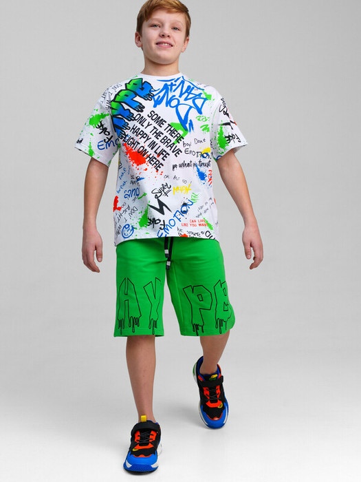 Футболка оверсайз для мальчика подростка. Высокое содержание хлопка. Благодаря наличию эластана в составе ткани изделие держит форму и меньше мнется.  Модель выполнена из качественного и приятного на ощупь трикотажа.