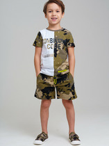 Легкий детский хлопковый костюм для мальчика. Рубашка прямого кроя с коротким рукавом и застежкой на кнопки. Классический воротник, накладные карманы. Свободные шорты на резинке со шнурком для регулировки. Удобные боковые карманы и карманы-карго.