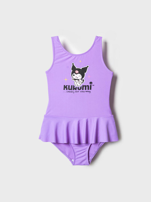 Слитный детский купальник для девочки. Украшен крупным принтом Kuromi, а также яркими звёздочками. Модель дополнена расклешённой юбкой, что придаёт изделию легкости. Все края обработаны эластичной тесьмой, чтобы изделие хорошо сидело на теле и не натирало. Благодаря UF-защите, ткань сохраняет первоначальный вид даже при длительном пребывании на солнце. Внутри купальника - подкладка. Предусмотрены чашечки только для 152 размера. Изделие подойдёт для пляжного отдыха или бассейна.