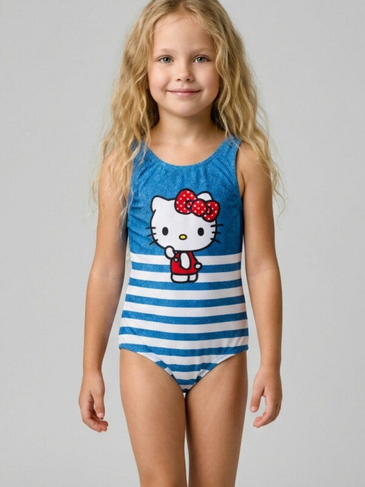 Слитный детский купальник Hello Kitty для девочки. Спереди — принт с персонажем Hello Kitty. На спинке — надпись "HELLO KITTY". Купальник имеет широкие бретели и глубокий вырез на спине, что удобно для активных игр и плавания. Внутри предусмотрена подкладка. Все края обработаны эластичной тесьмой, чтобы изделие хорошо сидело на теле и не натирало. Благодаря UF-защите, ткань сохраняет первоначальный вид даже при длительном пребывании на солнце. Подходит для плавания и активного отдыха.