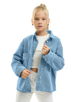 Куртка джинсовая oversize из эластичного денима. Свободная посадка. Средняя длина. Застежка на болты. Функциональные карманы.
