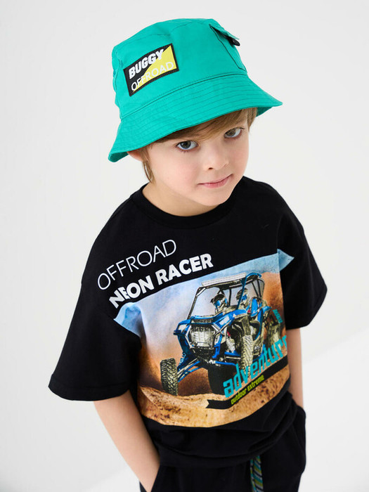 Детская панама для мальчика. Сзади — небольшой карман на липучке. Для вентиляции с обеих сторон есть по два люверса. Внутри предусмотрена эластичная резинка для комфортной посадки по голове.