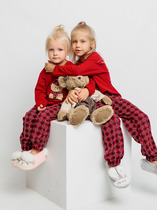 Пижама детская из футера с начесом для мальчика: свитшот и брюки из трикотажа. 100% хлопок. Брюки на резинке со шнурком. Эластичные манжеты по рукавам и низу брюк.