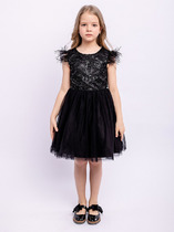 Платье трикотажное с юбкой из мягкой сетки. Верх платья из трикотажа с высоким содержанием хлопка 95%. Благодаря наличию 5% эластана в составе ткани изделие держит форму.