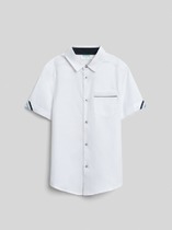 Детская рубашка в клетку для мальчика. Модель прямого кроя, с коротким рукавом. Выполнена из хлопковой ткани поплин. У изделия классический отложной воротник и удобная застежка на кнопки. На груди расположен яркий принт, а на правом рукаве — декоративная нашивка с изображением самолета.