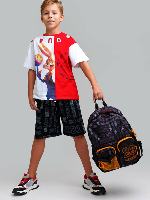 Стильный легкий рюкзак для мальчика-подростка в баскетбольной тематике с принтом. Прямые широкие регулируемые лямки с мягкими вкладками и сетчатым покрытием для улучшения вентиляции. Основной отдел на молнии с защитным клапаном. Спереди два кармана на молнии и один карман из сетки на утяжке, 2 боковых кармана из сетки на резинке. Внутри: отдел для папок, карман на молнии, 2 кармана без замка для телефона. Используется брендированная подкладка. Усиленная спинка и дно. Светоотражающие элементы на плечевых ремнях. Параметры: высота - 40 см, ширина -30 см, глубина - 15 см.