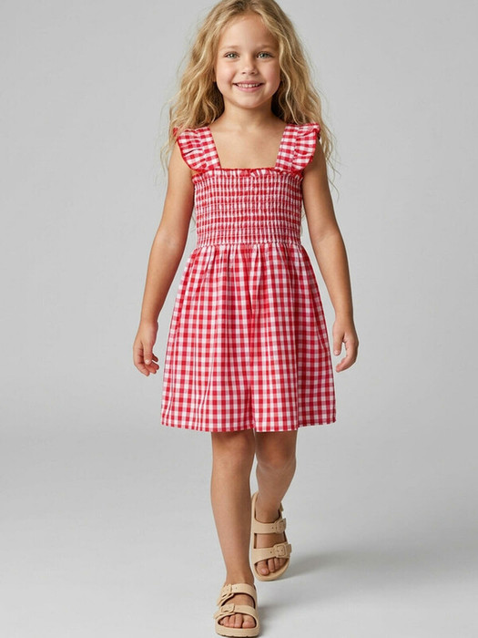 Детский летний сарафан на широких бретелях для девочки. Выполнен из хлопковой ткани поплин. Верх изделия собран на эластичную резинку, благодаря чему он плотно прилегает к телу и хорошо держится. Бретели украшены небольшими рюшами, которые придают образу нарядность. По линии груди — декоративная рюша. Юбка мягко присборена и расширяется к низу. Край подола фигурный, с плавными волнами. Модель длиной до колена.