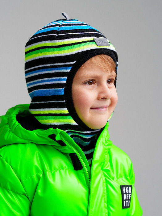 Шапка-шлем из вязаного трикотажа надежно защитит голову и шею ребенка от холода. Пряжа из акрила: легкая, теплая, гипоаллергенная. Шлем утеплен синтепоном. Подкладка из мягкого трикотажа с высоким содержанием хлопка 95%. Светоотражающая нашивка.