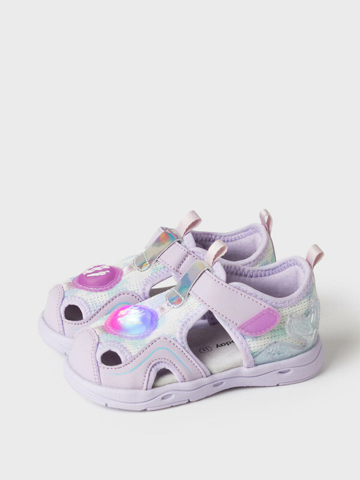 Детские сандалии для девочек в морской тематике. Сандалии с закрытой пяточной и носочной частью. Сандалии выполнены из дышащего текстиля и дополнительно усилены искусственной кожей в носочной части. Удобная липучка позволяет регулировать обувь на любой подъем и обуваться ребенку самостоятельно. В обуви стоит текстильная 100% хлопковая подкладка, которая обладает высокой гигроскопичностью. Стелька выполнена из свиной натуральной кожи. Модель декорирована патчем в виде ракушки с LED подсветкой. Подошва из ЭВА очень легкая и гибкая.
