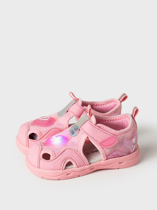 Детские сандалии для девочек в морской тематике. Сандалии с закрытой пяточной и носочной частью. Сандалии выполнены из дышащего текстиля и дополнительно усилены искусственной кожей в носочной части. Удобная липучка позволяет регулировать обувь на любой подъем и обуваться ребенку самостоятельно. В обуви стоит текстильная 100% хлопковая подкладка, которая обладает высокой гигроскопичностью. Стелька выполнена из свиной натуральной кожи. Модель декорирована патчем в виде ракушки с LED подсветкой. Подошва из ЭВА очень легкая и гибкая.