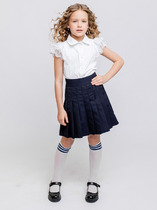 Юбка джинсовая для девочки. Застежка на джинсовую пуговицу. Внутренняя утяжка на талии и с декоративный пояс. Функциональные накладные карманы.