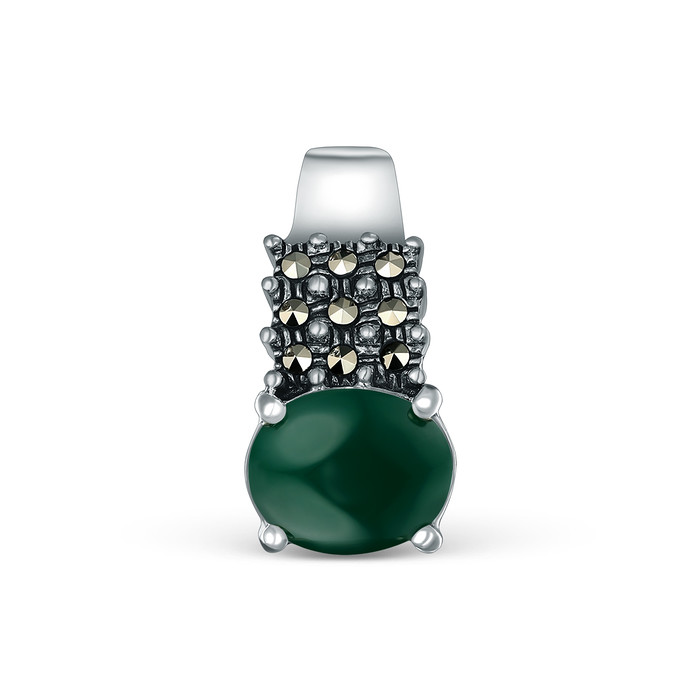 Подвеска из чернёного серебра с зелёным агатом и марказитами GAP3100аз