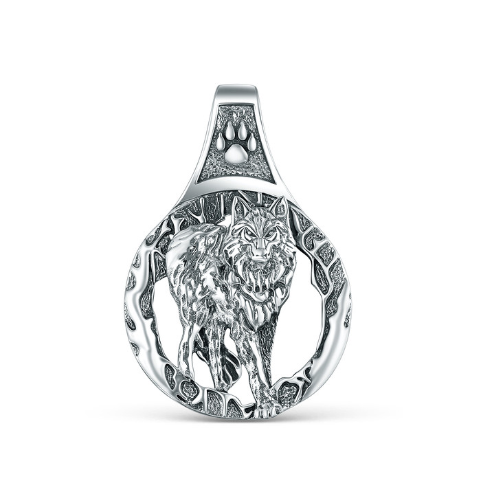 Подвеска из чернёного серебра - Волк 925 пробы п068ч