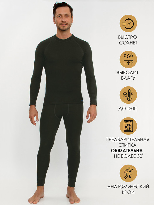 Артикул поставщика: 2МНК5606038 Ткань: ластик Состав: ПЭ 95%, вискоза 5% Сезон: Зима Год: 2022 Страна: Россия Российский размер: 44 Рост: 176 Обхват груди: 88Термокомплект из лонгслива и кальсон подходит для ежедневного использования в качестве нательного белья в холодную погоду до -20 градусов при средней и высокой физической активности. Комплект выполнен из мягкого термополотна с микроначесом с изнаночной стороны. Плоские швы и эргономические лекала обеспечивают комфортное прилегание изделия. Сохраняет тепло и выводит влагу, позволяя коже оставаться сухой. Уход: машинная стирка при температуре до 30 градусов без предварительного замачивания. Обязательная предварительная стирка! При выборе размера необходимо иметь в виду, что термобелье предполагает плотное облегание тела, не стесняя движений, не оставляя сборок и складок, с минимальным запасом по длине. Только правильно подобранное по размеру термобелье эффективно выполняет свои терморегуляционные функции.