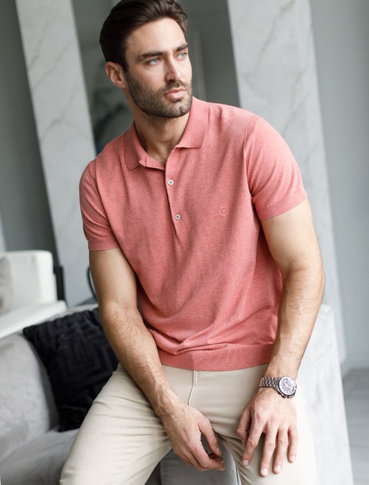 Состав: 100%Хлопок Параметры модели на первом фото: Рост 190, бюст 108, талия 87, бедра 104Поло терракотового цвета с эффектом меланж тонкой вязки из 100% хлопка. Отборные волокна хлопка исключительно мягкие, поэтому изделие легкое и шелковистое на ощупь. Идеальное решение для весны и лета. Офисного дресс-кода и повседневного образа. Модель дополнили вышитым логотипом бренда.