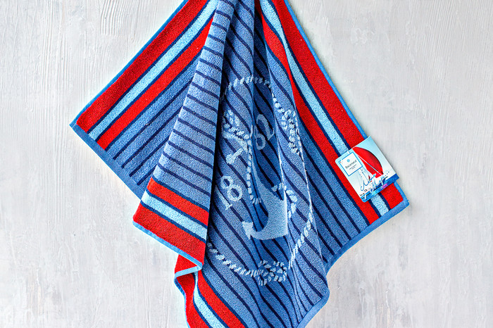 Махровые полотенца "Лето-Море"  - это коллекция жаккардовых пестротканых полотенец из 100% хлопка! Гармоничная цветовая палитра в бежевых, голубых и красных тонах будит воспоминания о прошедшем отдыхе и будоражит воображение о предстоящем. Прикосновение мягкого хлопка окутывает Вашу кожу как нежный морской бриз. Выгоды: крученая двойная кардная нитка 24/2. Двойная нитка в основе полотенца 20/2 - особая прочность и долговечность. Размер полотенца 70*140, 100% хлопок, 500 гр/м2. Страна: Узбекистан.