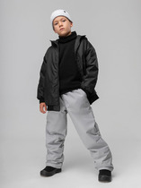 Полукомбинезон без подкладки, непромокаемый, на эластичных бретелях с регулировкой длины при помощи фастекса, сбоку под проймой кнопки для регулировки объема, низ брючин с эластичной резинкой. Для фиксации полукомбинезона используются съемные силиконовые штрипки. Светоотражающий принт в виде полосы сбоку.