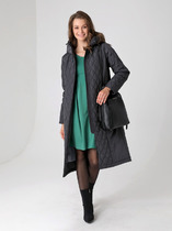 Модное классическое полупальто прямого силуэта с большим отложным воротником с лацканами с застёжкой на потайные кнопки. Карманы- листочки и горизонтальная стежка. Рост фотомодели 173 см.Длина изделия по спинке - ок. 99 см, длина рукава - ок. 64 см,рост 170Р-ры: 42-52Состав: полиэстер 100%Утеплитель: Air Twin Light 100 г/m2Цвет - черника