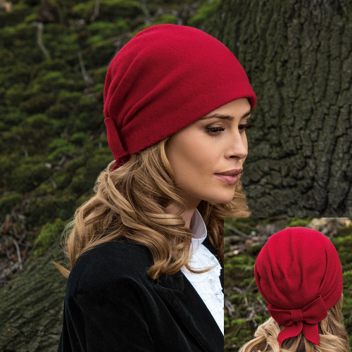Женская базовая шапка-бандана. Сзади украшена классическим бантом, выполненным из основного полотна. Мягкие складки и фигурные защипы придают дополнительный объем.