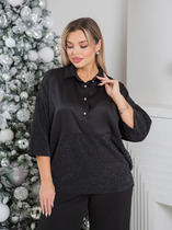 Блузка полуприлегающего силуэта, с втачным рукавом. Застежка центральная на петли и пуговицы. Горловина с воротником рубашечного типа с отрезной стойкой. По линии груди вытачки. Рукав длинный с тремя притачными воланами разной длины.