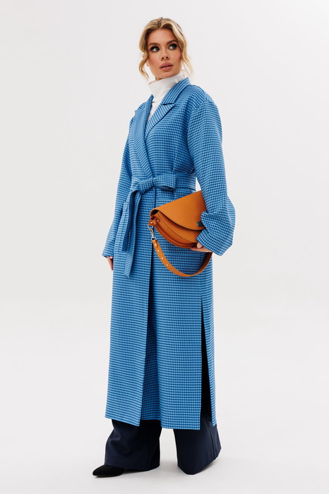 Кардиган женский свободного силуэта со спущенным плечом, в боковых швах разрезы. Рукав длинный. По переду накладные карманы. Кардиган на подкладке. Пояс из основной ткани в комплекте.