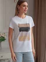 Туника А-образного силуэта, выполнена из шифона. Модель без подкладки и застежки, с плечевыми накладками. Низ туники асимметричной формы: укороченный спереди и удлиненный к центру спинки. Перед и спинка состоят из двух разных по длине слоев: верхний спереди короче нижнего на 4 см, а по спинке на 16 см. Горловина переда и спинки округлая, по переду слегка углубленная. Рукав, втачной, расширенный, с фигурным низом. Длина туники (спинка) - 118 см, длина туники (перед) - 58 см. Длина рукава (от проймы переда) - 28 см, длина рукава (от проймы спинки) - 44 см.