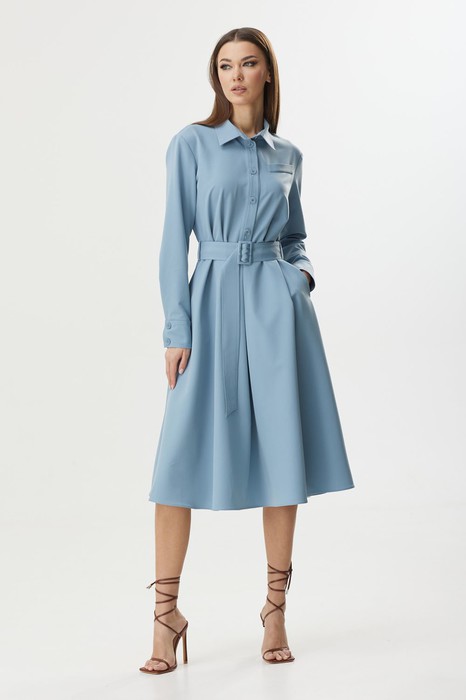 Элегантное женское платье из текстильной ткани. Платье отрезное по линии талии, юбка расширена к низу, в боковых швах карманы.