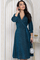Платье летнее из хлопкового шитья. Полуприлегающего силуэта, с втачным рукавом, отрезное по талии. Полочка отрезная по талии, с нагрудной вытачкой. Нижняя часть платья присобрана по линии талии. По низу отрезной волан. Спинка с фигурным вырезом, застежкой по горловине спинки на пуговицы, и от боковых швов с пояском на завязках. По талии отрезное, нижняя часть вверху на резинке, по низу отрезной волан со сборкой. Рукав внизу на узкой манжете, присобран по окату и по шву притачивания манжеты.