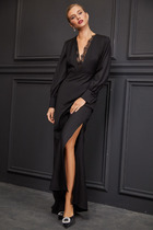 Платье женское из трикотажного полотна полуприлегающего силуэта. Рукава цельнокроеные по низу с притачной манжетой застегивающийся на пробивную кнопку окрашенную в тон ткани. В среднем шве спинки обработана потайная молния, по низу обработана шлица. Горловина круглая. По полочке на уровне талии прикреплен пояс формирующий складки, застегивающийся на спинке с возможностью регулировки пробивными кнопками.