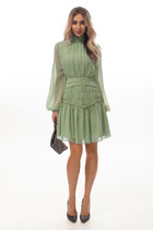 Платье свободного силуэта в стиле бохо. Вырез горловины округлый, рукав спущенный, длинный. В боковых швах карманы, по низу изделия рюши из хлопка. Платье без застежки.