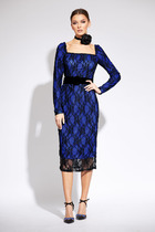 Летнее платье прилегающего силуэта, выполнено из хлопковой ткани и хлопкового кружева. Лиф платья отрезной по линии талии, горловина округлой формы на обтачке. По переду выполнен средний шов, декорированный бантиками, также на лифе обработаны рельефы. Юбка платья расклешенная к низу, с складками по линии талии, по бокам на юбке выполнены вставки из кружева. Рукав втачной, оптимальной длины, присборен по низу на манжет с застежкой на пуговицу, также на рукавах выполнена вставка из кружева. Спинка отрезная по линии талии, со средним швом и вытачками, в среднем шве потайная молния. Эффектное, легкое платье сделает ваш образ романтичным и нежным! (пояс в комплект не входит)