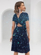 Стильное укороченное трикотажное платье прямого силуэта. Выполнено из смесовой хлопковой пряжи. Модель вывязана фактурным переплетением — полуфанг. Линия плеча мягкой формы, слегка спущена. Горловина округлая — обработана эластичной бейкой. Изделие декорировано кружевной каймой и ручной вышивкой жемчужными бусинами. Платье — отличный самостоятельный предмет гардероба.